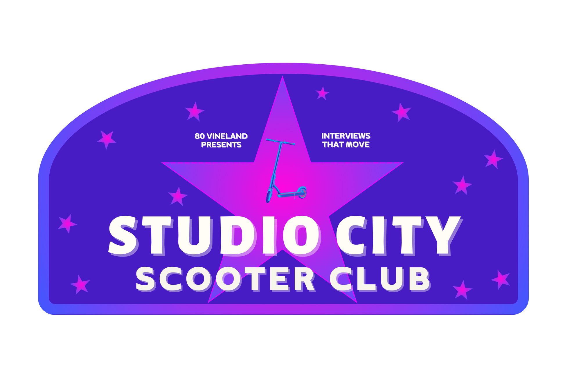 Stick this on your scooter, skateboard, or bike to show your love for the Studio City Scooter Club. Do you want the world to know how awesome interviews can be while on a slow-moving scooter? Then, buy a sticker for a friend too! Help us spread the word about this new interview series premiering on YouTube, Tiktok, & Instagram @80Vineland. 3 in by 2 in.